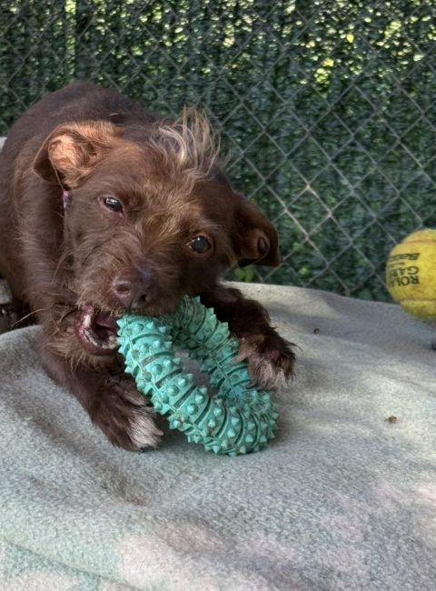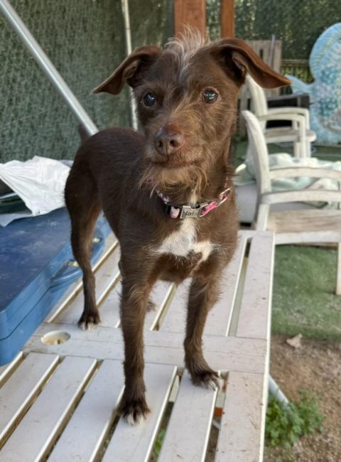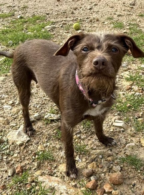 Die kleine, ca. 9 Jahre alte Terrier Mischlingshündin wurde vor kurzem, gemeinsam mit zwei Hundefreunden, bei uns im Tierheim in Calvia abgegeben. Ihre Familie konnte den drei Hunden aus verschiedenen Gründen einfach nicht mehr gerecht werden und so hat man uns um Hilfe gebeten.