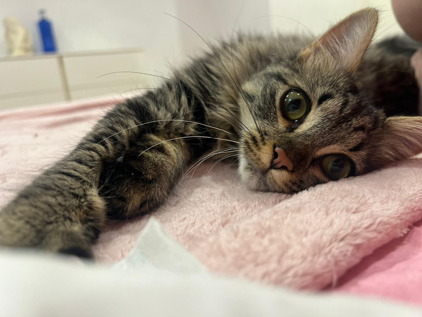Florecita es una gatita atigrada preciosa 😍 de pelo largo de unos 5 meses que fue abandonada en una colonia en Palmanova. Es un bombón ❤️, muy cariñosa🥰, curiosa, alegre y juguetóna 🧸🎏🥎 cuando coge confianza, en el principio es tímida. En su casa de acogida se lleva muy bien con la otra gata y por el perrito por eso queremos que en un futuro conviva con otra gatita o con otro gatito o con un perro amigable con gatos.