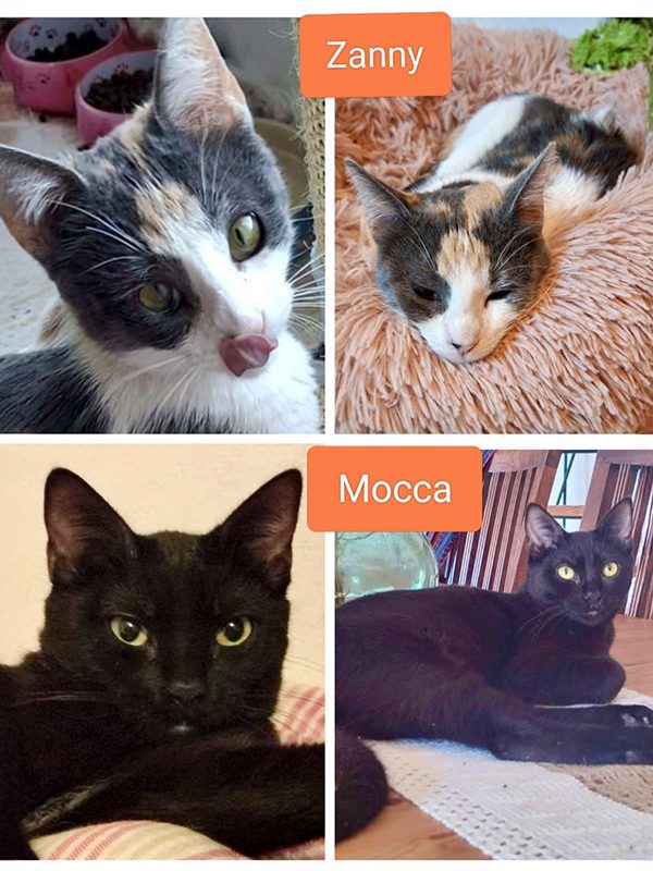 Hoy os presentamos a Zanny (hembra tricolor, 8 meses) y Mocca (hembra negra, 8 meses). Las dos se conocieron en su casa de acogida y enseguida hicieron mucha piña 💞. Actualmente viven con mas gatos con quienes también se llevan bien. Son muy buenas ❤️ y juguetonas 🧸🎏🥎 y ya están acostumbradas a salir a un jardín 🌲🌴🪵🌿🪴 vallado. Ya por eso les estamos buscando una casa con jardín 🏡.